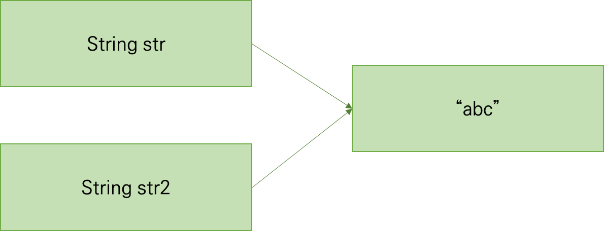String str = "abc" 와 같이 안하는 이유는 String str2 = "abc"가 있을때 텍스트가 같기 때문에