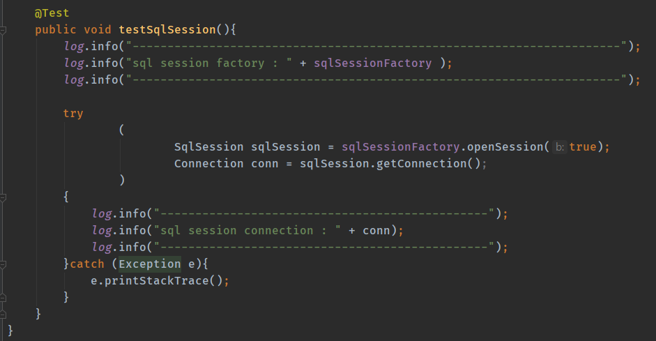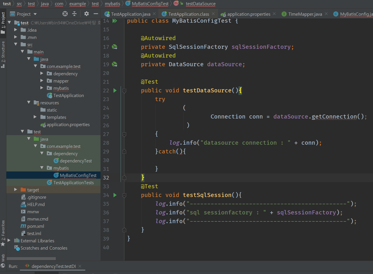 MyBatisConfigTest파일에서 testSqlSession에서 추가로 작성하고 테스트 해보자!