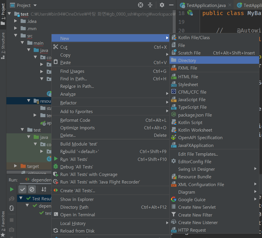 xml 만들기 (mapper디렉토리를 먼저 만들고, 그안에 xml파일을 만든다. xml파일이 따로 없기 때문에 File을 만들고 확장자를 xml로 해주면 된다.)